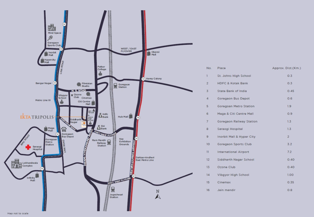 At Goregaon WestBeing One of Kind Ultra-luxury Residential Project in the Vicinity Only Adds to the Glitter. Being Centrally Located, the Project Offers Residents a Huge Advantage of Accessing the Best of Everything With Great Ease. That Makes Ekta Tripolis a Dream Address in Every Sense of the Word. Find the Indulgent Lifestyle You've Been Secretly Craving. Located in the Upscale Suburb of Goregaon West, Ekta Tripolis Presents Finely Crafted 2 & 3 Bhk Apartments. Ekta Tripolis is a Striking Landmark With 36 Residential Floors and Goregaon West's 1st Evander Holyfield Gym. Experience Fitness and Luxury Blended Together in Goregaon's Finest Residential Landmark That's Now More Accessible Than Ever Before. 2 & 3 Bedroom Apartments in Goregaon West. Spacious Interiors, Modular Kitchens, Imported Marble Flooring & More. Home to Goregaon West's First Evander Holyfield Gym - an International Brand in Fitness. Bustling Social Infrastructure, Close to Inorbit Mall, Vibgyor School, and International Airport.